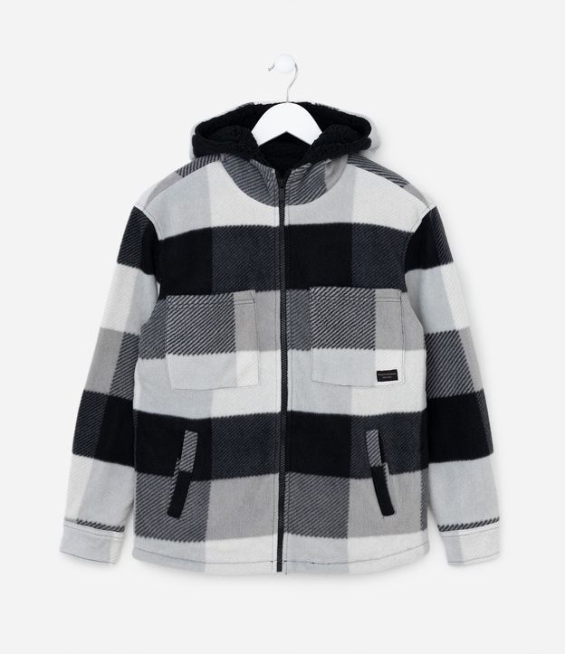 Camisa Infantil em Fleece Xadrez e Forro de Sherpa - Tam 5 a 14 anos