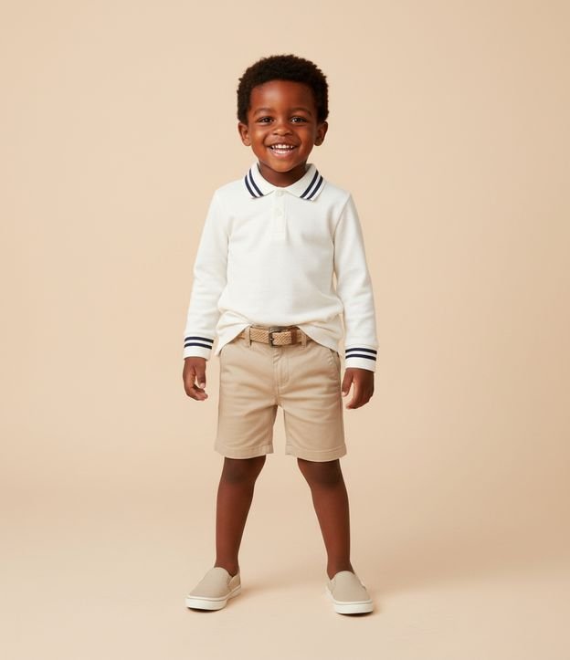 • Camisa Infantil em Malha Waffle com Gola Polo – Tam 1 a 5/6 Anos Off White 1