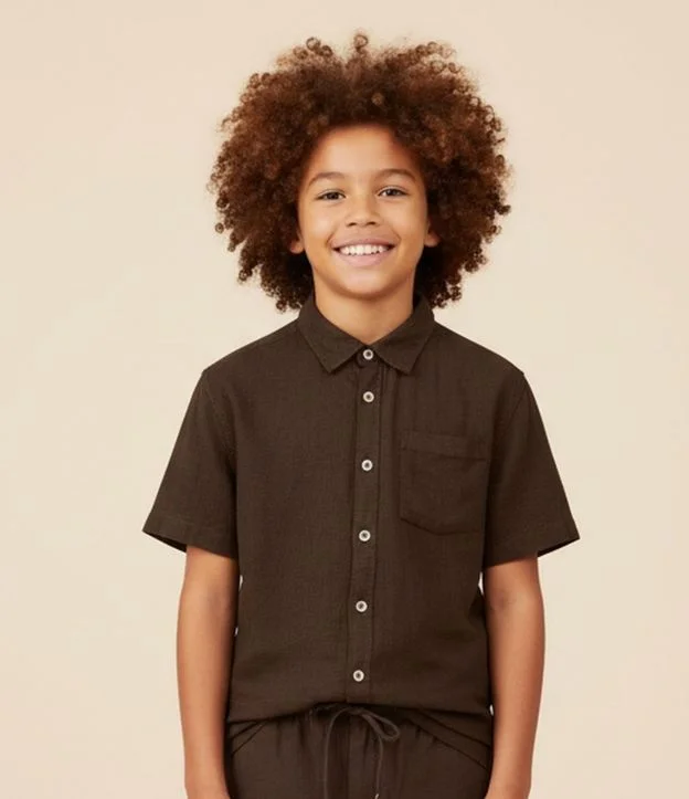 Camisa Infantil em Viscolinho com Bolso - Tam 5 a 14 Anos Marrom