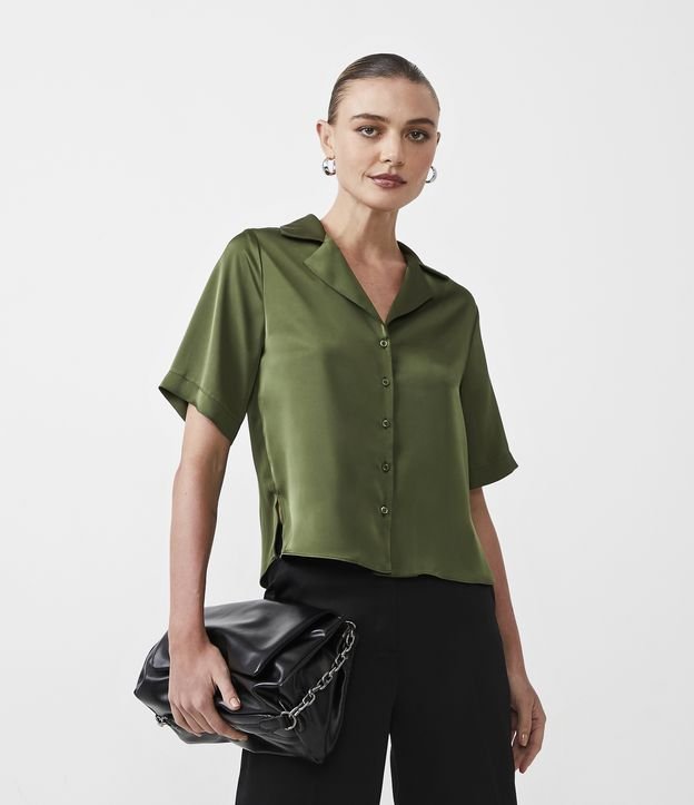 Camisa Manga Curta com Textura Acetinada