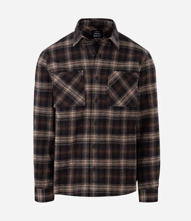 Camisa manga longa em flanela de algodão com estampa xadrez em fundo marrom. Possui gola tradicional, bolsos frontais e caimento confortável, ideal para compor looks casuais nos dias mais frescos. Confeccionado em algodão de certificado BCI.