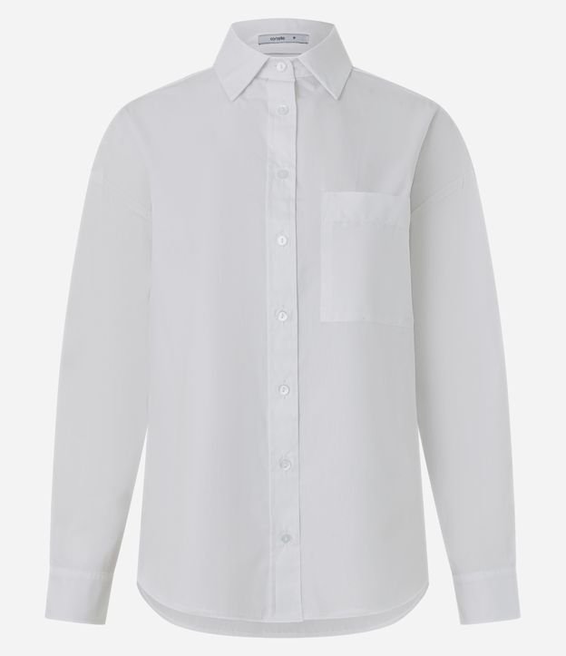 Camisa Manga Longa em Tricoline com Bolso Frontal Branco