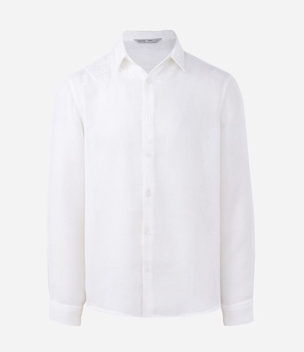 Camisa Manga Longa Texturizada com Detalhes em Bordado de Peixe Off White