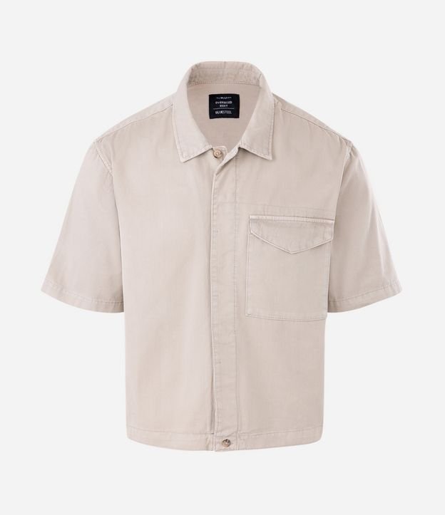 Camisa Overboxy em Sarja com Bolso Envelope Frontal Bege