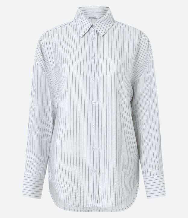 Camisa Oversized Acetinada com Estampa Risca de Giz Branco