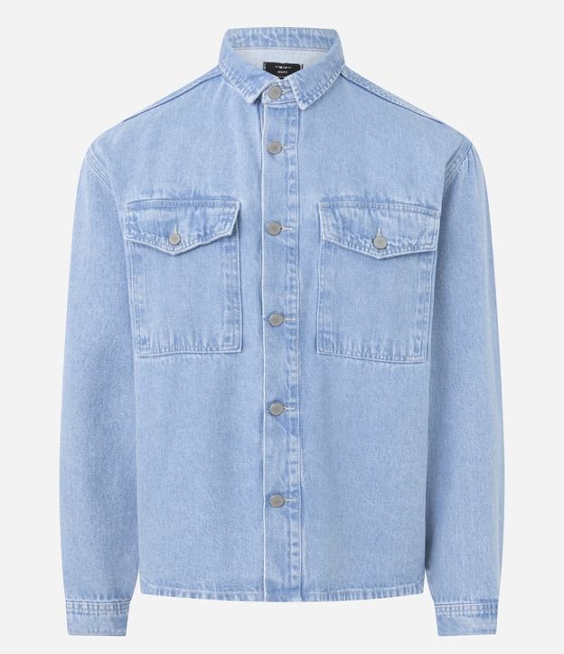 Camisa Oversized Boxy em Jeans com Efeito Marmorizado Azul Claro