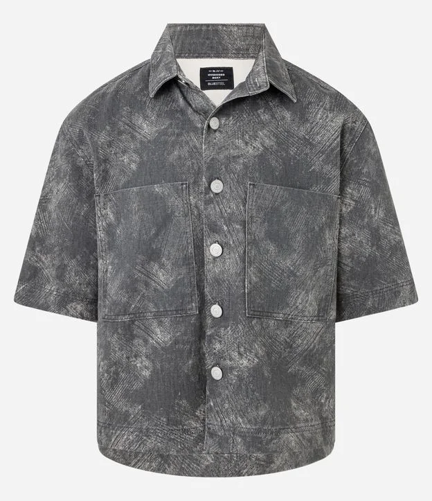 Camisa Oversized Boxy em Sarja com Estampa Marmorizado Abstrata Cinza Chumbo