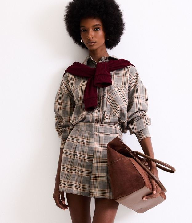 Camisa Oversized em Crepe Xadrez com Bolsos