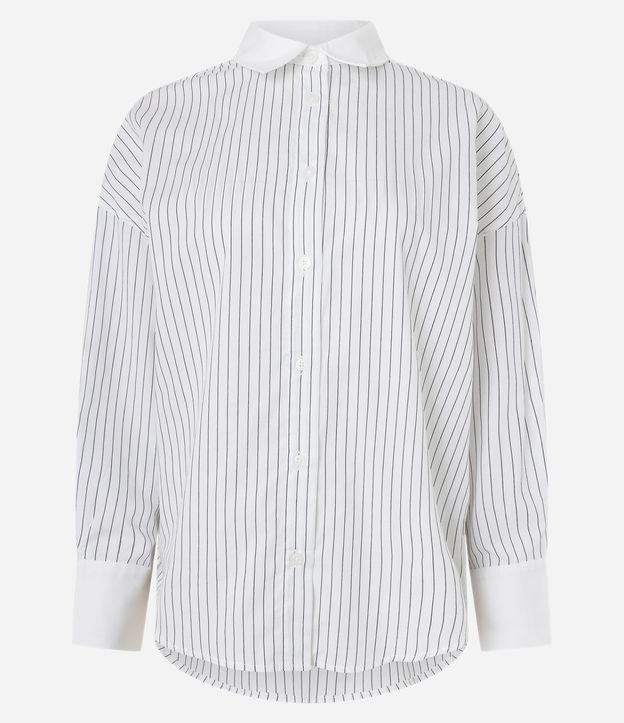 Camisa Oversized em Tricoline com Listras de Fio Tinto Branco