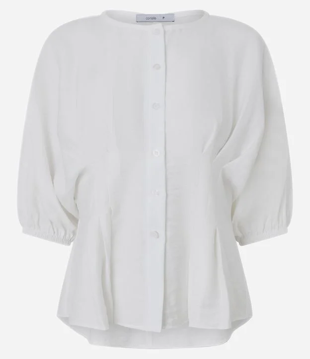 Camisa Peplum com Mangas Bufantes e Cintura Drapeada Branco
