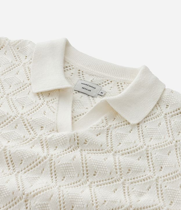 Camisa Polo com Efeito Crochê e Textura em Losango Off White