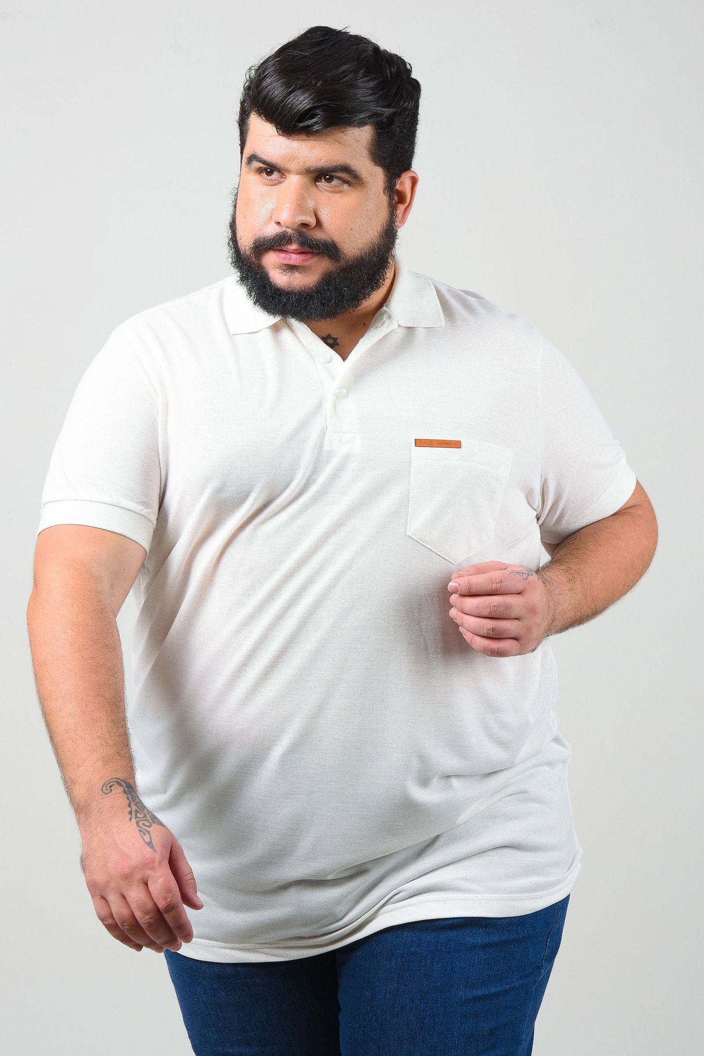 Camisa polo piquet rustico plus size off white