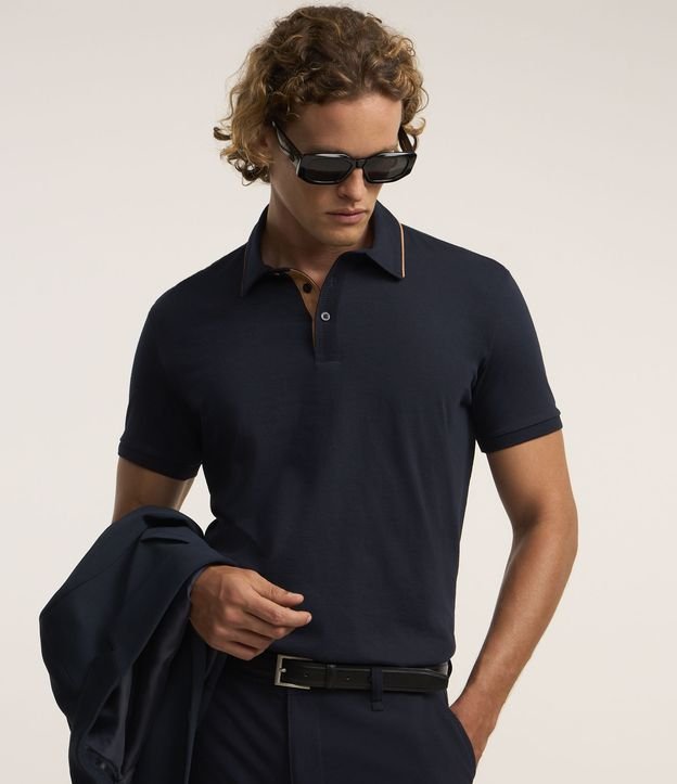 Camisa Polo Regular em Algodão Peruano com Detalhe Contrastante na Gola Azul Marinho