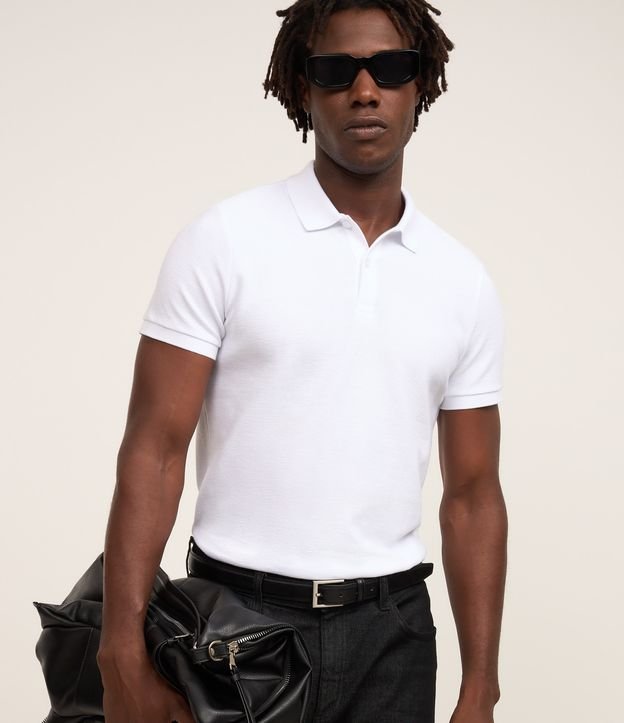Camisa Polo Slim com Botões e Textura Canelada Branco