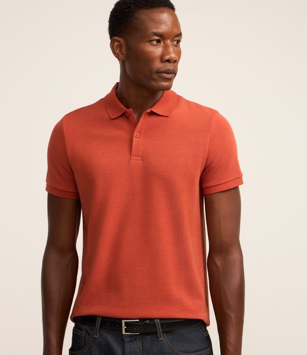 Camisa Polo Slim com Botões e Textura Canelada Laranja