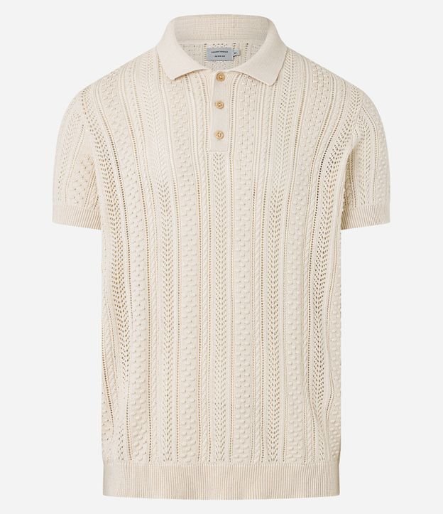 Camisa Polo Texturizada com Pontos Abertas Bege