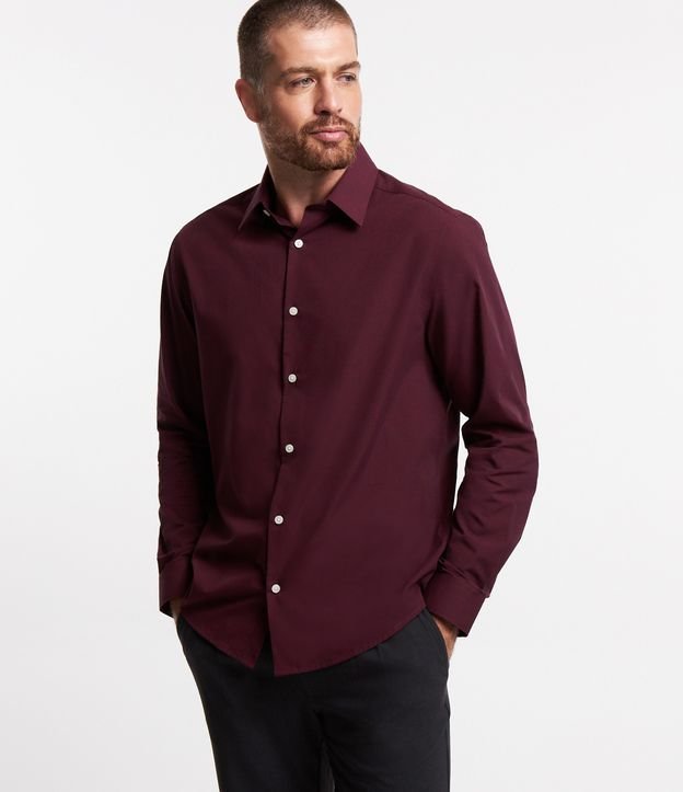 Camisa Regular Básica em Algodão com Fil a Fil Bordô