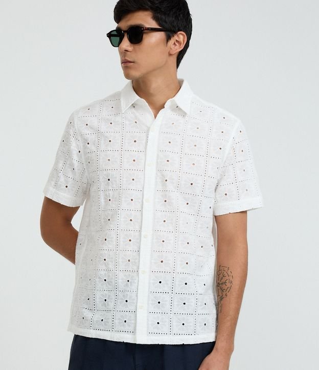 Camisa Regular em Algodão com Bordado de Flores Branco