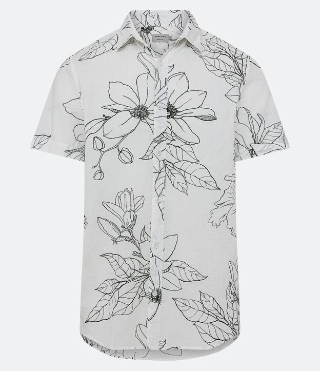 Camisa Regular em Linho com Estampa Floral e Folhagem