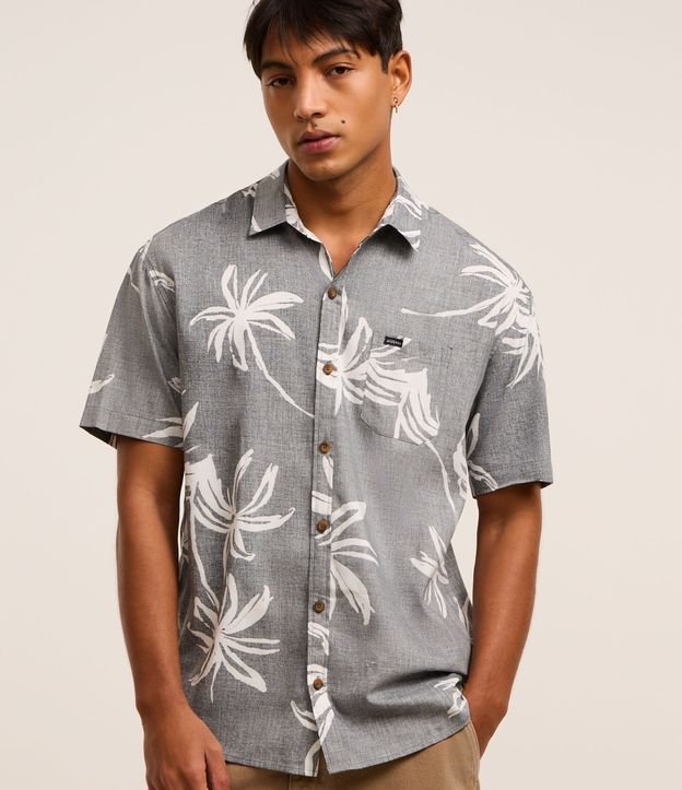 Camisa Relaxed em Tricoline com Estampa Floral Cinza
