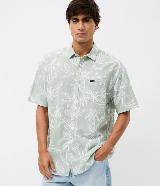 Camisa Relaxed em Tricoline com Estampa Floral Verde