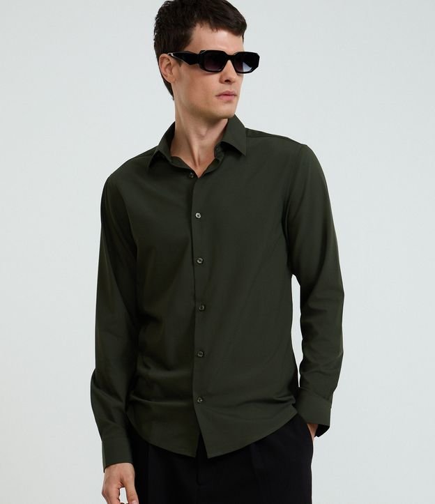 Camisa Slim em Fibra de Bambu Verde Escuro