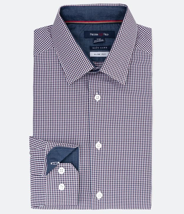 Camisa Slim Fit Manga Longa Estampa Xadrez Grid