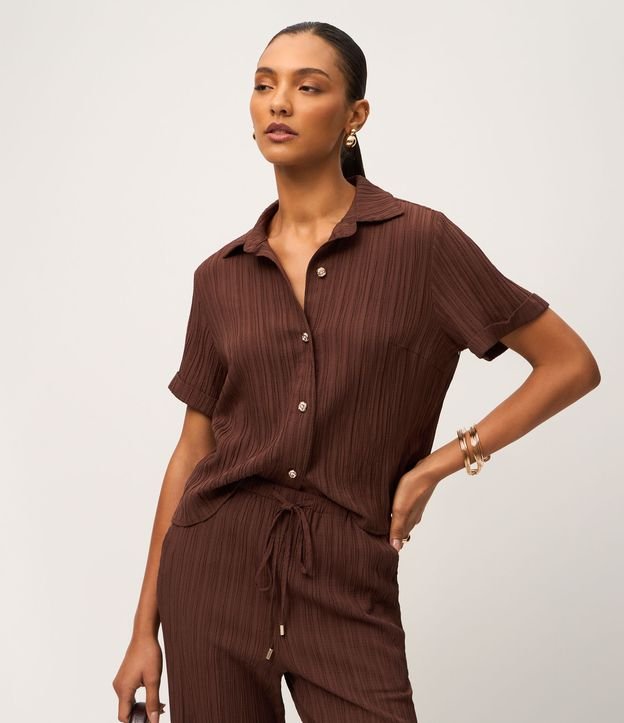 Camisa Texturizada em Viscose com Botões Diferenciados Marrom