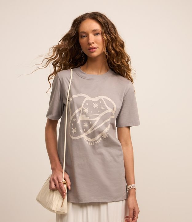 Camiseta Alongada em Algodão com Estampa de Chapéu