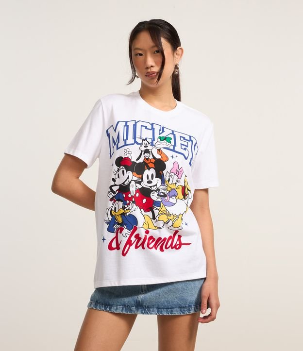 Camiseta Alongada em Algodão com Estampa Mickey e Friends