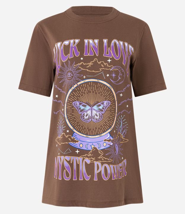 Camiseta Alongada em Algodão com Estampa Mística e Borboleta