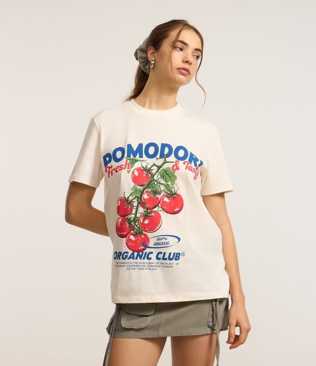 Camiseta Alongada em Algodão com Estampa Pomodoro Off White