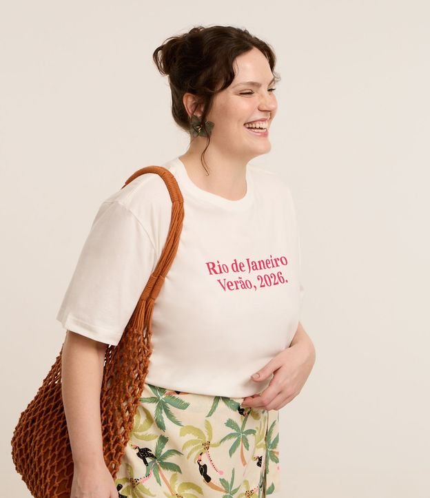 Camiseta Alongada em Algodão com Estampa Rio de Janeiro 2026 Curve & Plus Size Branco