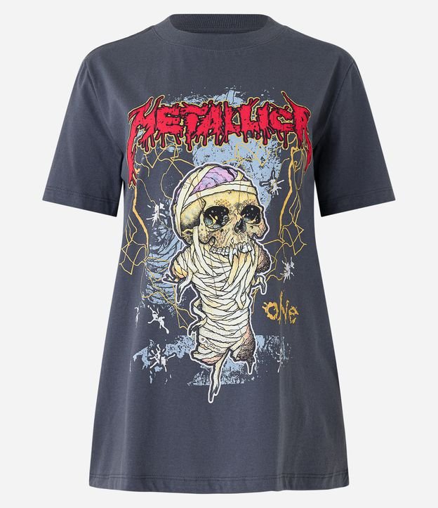 Camiseta Alongada em Meia Malha com Estampa Banda Metallica