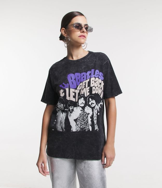 Camiseta Alongada em Meia Malha com Estampa Beatles