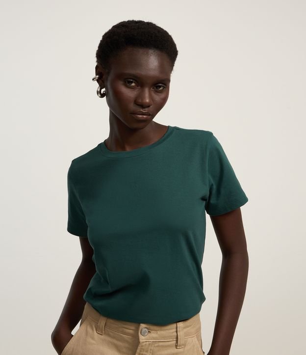 Camiseta Básica em Algodão com Manga Curta Verde Petróleo