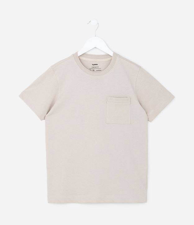 Camiseta Básica Infantil em Algodão com Bolsinho - Tam 5 a 14 anos Bege