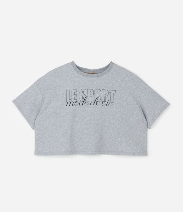 Camiseta Box em Moletom com Lettering Le Sport Curve & Plus Size Cinza