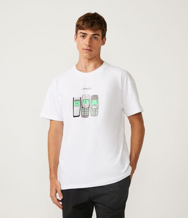 Camiseta Boxy em Algodão com Estampa de Celulares Vintage