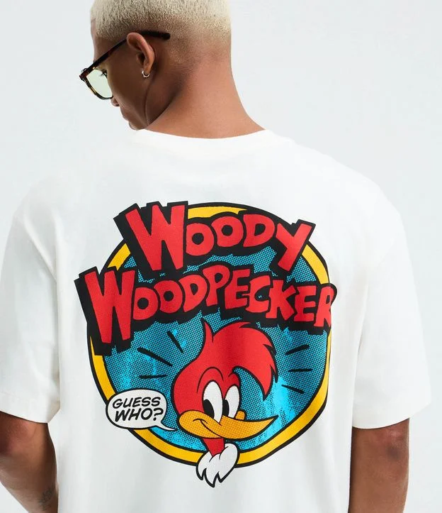 Camiseta boxy confeccionada em algodão certificado BCI e boas práticas ambientais. Possui gola redonda, mangas curtas e estampa localizada do clássico personagem Woody Woodpecker, ícone da animação que atravessou gerações, trazendo estilo e autenticidade ao visual casual.