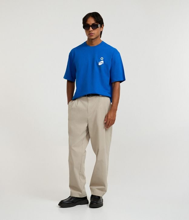 Camiseta Boxy em Algodão com Estampa Lettering Section Azul