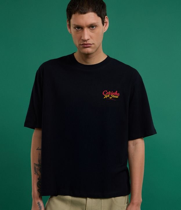 Camiseta Boxy em Algodão com Estampa Lettering Coxinha Preto