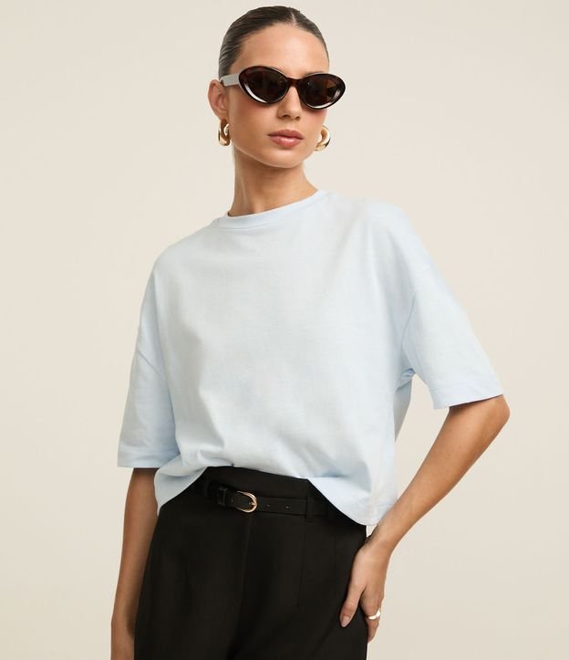 Camiseta Boxy em Algodão com Gola Redonda Azul