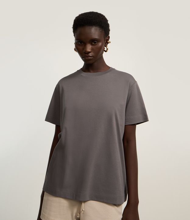 Camiseta Boxy em Algodão com Manga Curta Cinza