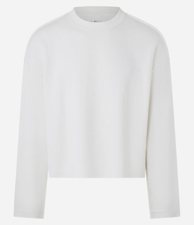 Camiseta masculina confeccionada em algodão mais sustentável com gola redonda, manga longa. Peça no modelo boxy com detalhes de recortes na costura em alto relevo.