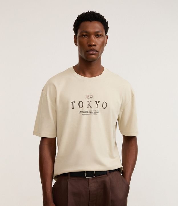 Camiseta boxy de mangas mangas curtas, confeccionada em cotton, com gola redonda, ideogramas japoneses e lettering TOKYO estampado no peito. Este produto possui viscose cetficada em sua composição, além de ter sido produzido através de processos mais sustentáveis, sendo ambientalmente mais responsável.