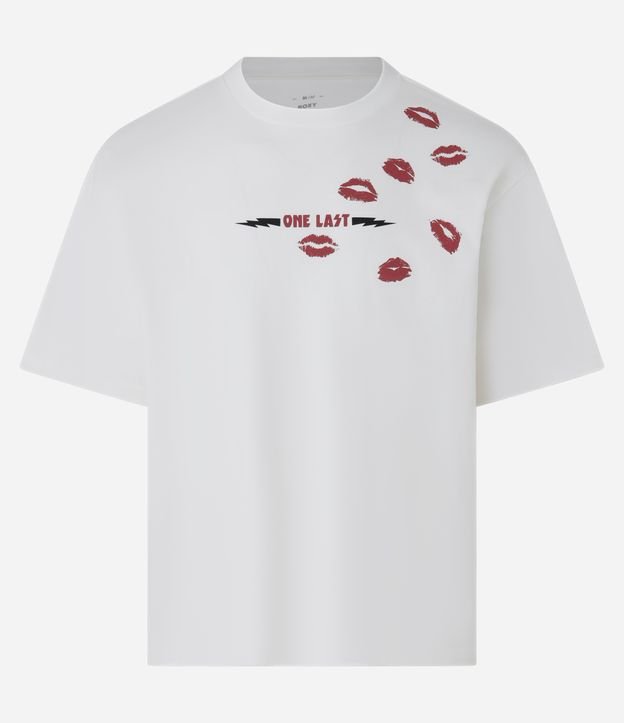 Camiseta Boxy em Malhão com Estampa Kiss Branco