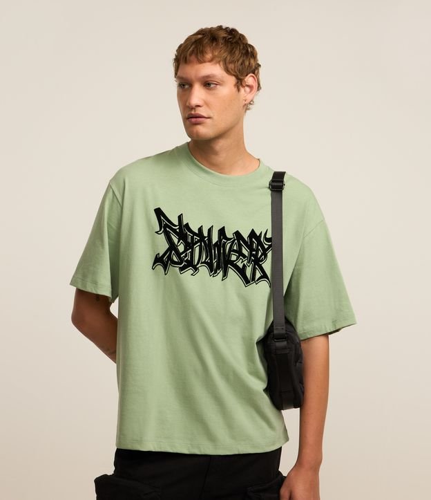 Camiseta Boxy em Malhão com Estampa Lettering Grafitti Verde