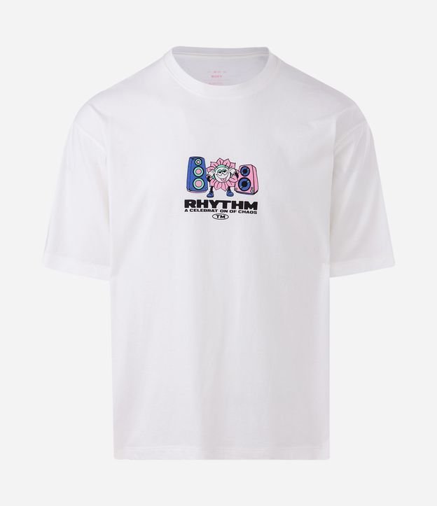 Camiseta Boxy em Malhão com Estampa Off the Rhythm Branco