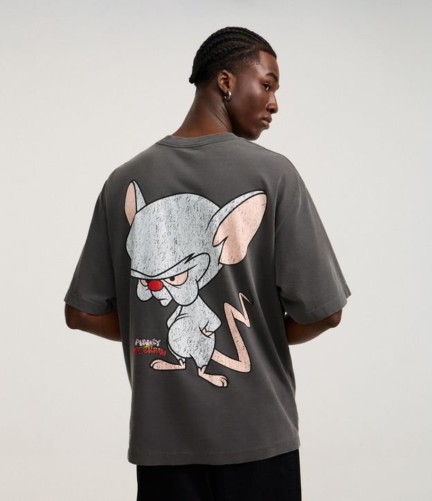 Camiseta Boxy em Malhão Estonada com Estampa Pinky e Cérebro